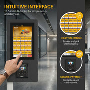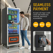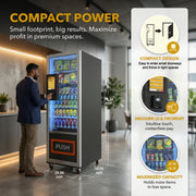 The compact Manovix M6T-2 is designed for high-traffic locations where space is premium. Its small footprint delivers big returns, offering both snacks and refreshing beverages in one sleek unit. With compact dimensions of 25.59"W x 35.55"D x 75.59"H, its ingeniously designed small body effortlessly fits through most standard doorways, allowing easy placement in a wide variety of tight spaces—no need to worry about it being too large to enter.
